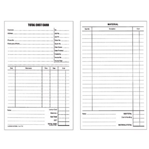 Zions Total Cost Cards System 125x205mm Pack of 100