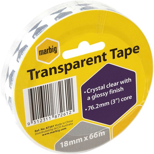 Marbig Office Tape 18mm x 66m 76.2mm Core Clear 0