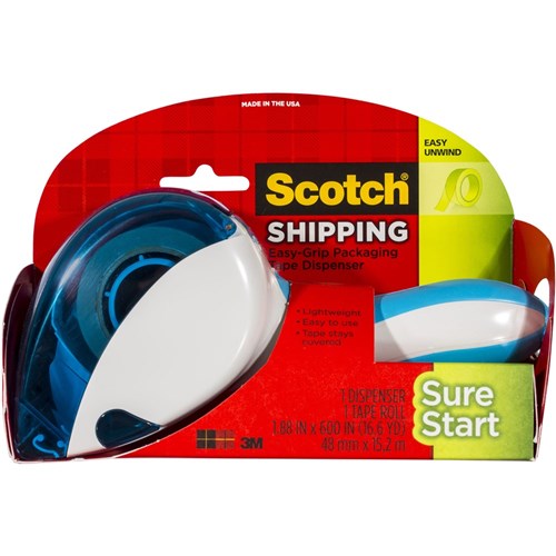 A dispenser that weighs less than traditional pistol grip packaging tape dispensers Comes loaded with high performance packaging tape (48x15 2m) Soft-touch handle