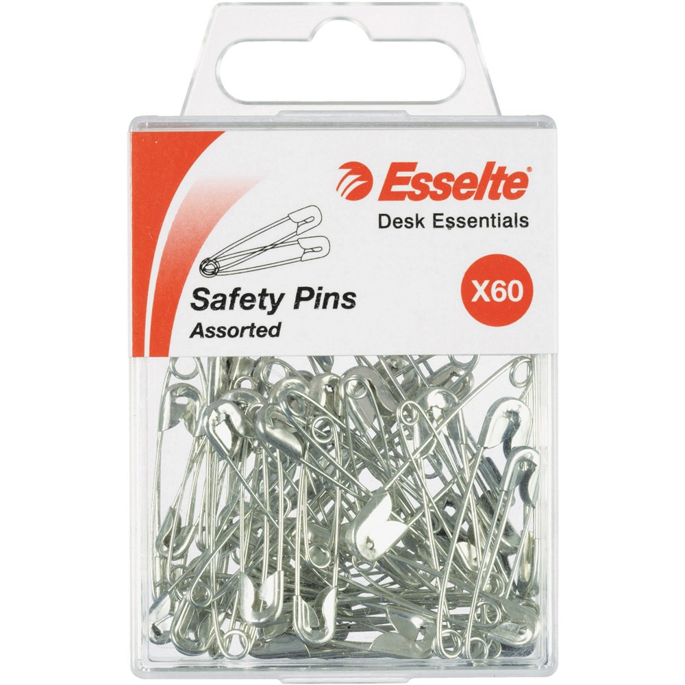 Esselte Safety Pins Assorted Sizes Silver Pack Of 60 0