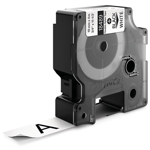 Dymo 18489 Rhino Industrial Labels 19mmx3.5m Nylon Black on White