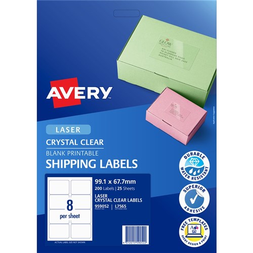 Avery Crystal Clear Laser Address Labels White L7565 99.1x67.7 mm 8UP 200 Labels