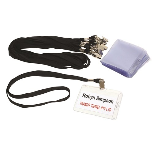 • Includes 50 x flat lanyards with alligator clip, 50 x ID card holders pre-punched for use landscape or portrait and 50 x blank software compatible insert cards.