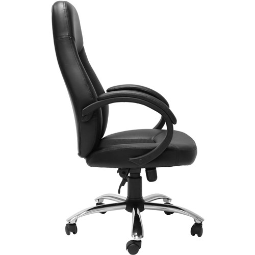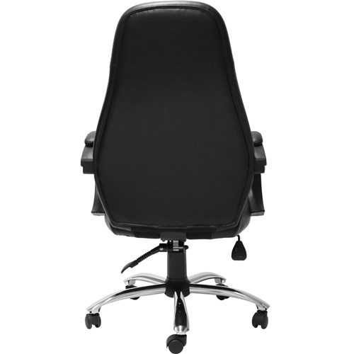 • Executive high back chair with fabric inlay for extra comfort, chrome base and upholstered arms.