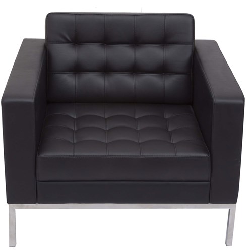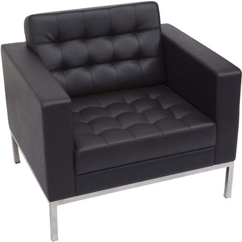 • Elegant reception area arm chair with button finish to black PU, easy clean upholstery.