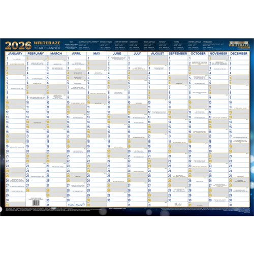 Collins Writeraze Dated Wall Planner 700 x 1000mm Unframed Blue