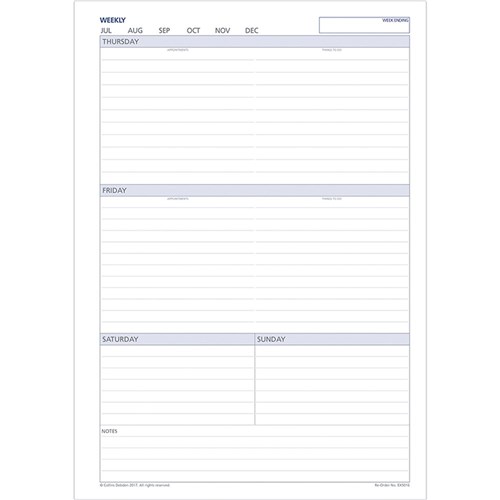DEBDEN DAYPLANNER REFILL A4 Weekly Non-Dated Calendar