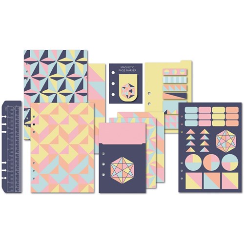 Personal organisation just got a whole lot more stylish This DIY pack allows you to personalise your diary with geometric theme Stylish refills also have accessory packs available to personalise your DayPlanner Desk Pack of Accessories - 2 x Sheets Planning Stickers 2 x Divider Tabs with Pockets Today Ruler Magnetic Page Marker 6 x Tabbed Dividers 12 x Adhesive Tabs Personal Pack of Accessories - 2 x Sheets Planning Stickers 2 x Divider Tabs with Pockets Today Ruler Magnetic Page Marker 6 x Tabbed Dividers 12 x Adhesive Tabs Sticker Set - 6 x Sheets Planning Stickers