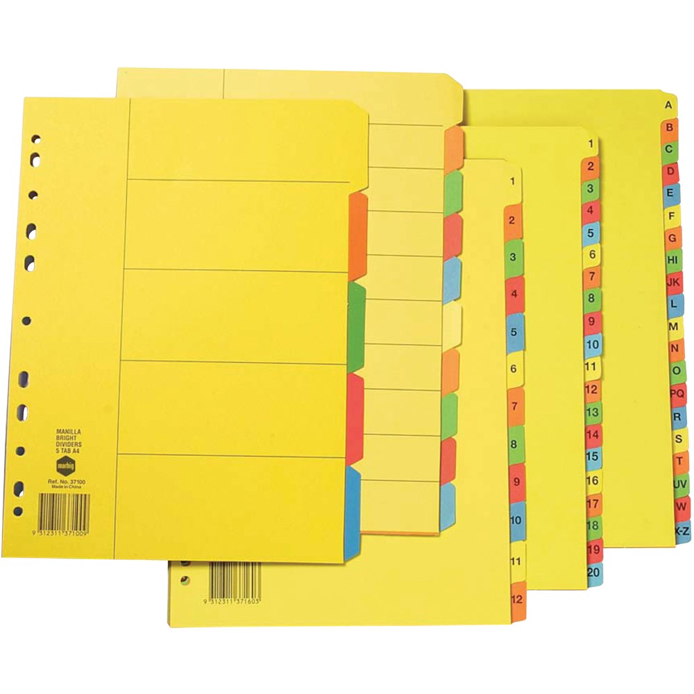 MARBIG BRIGHT MANILLA DIVIDERS - A4 1-20 Multi-Coloured