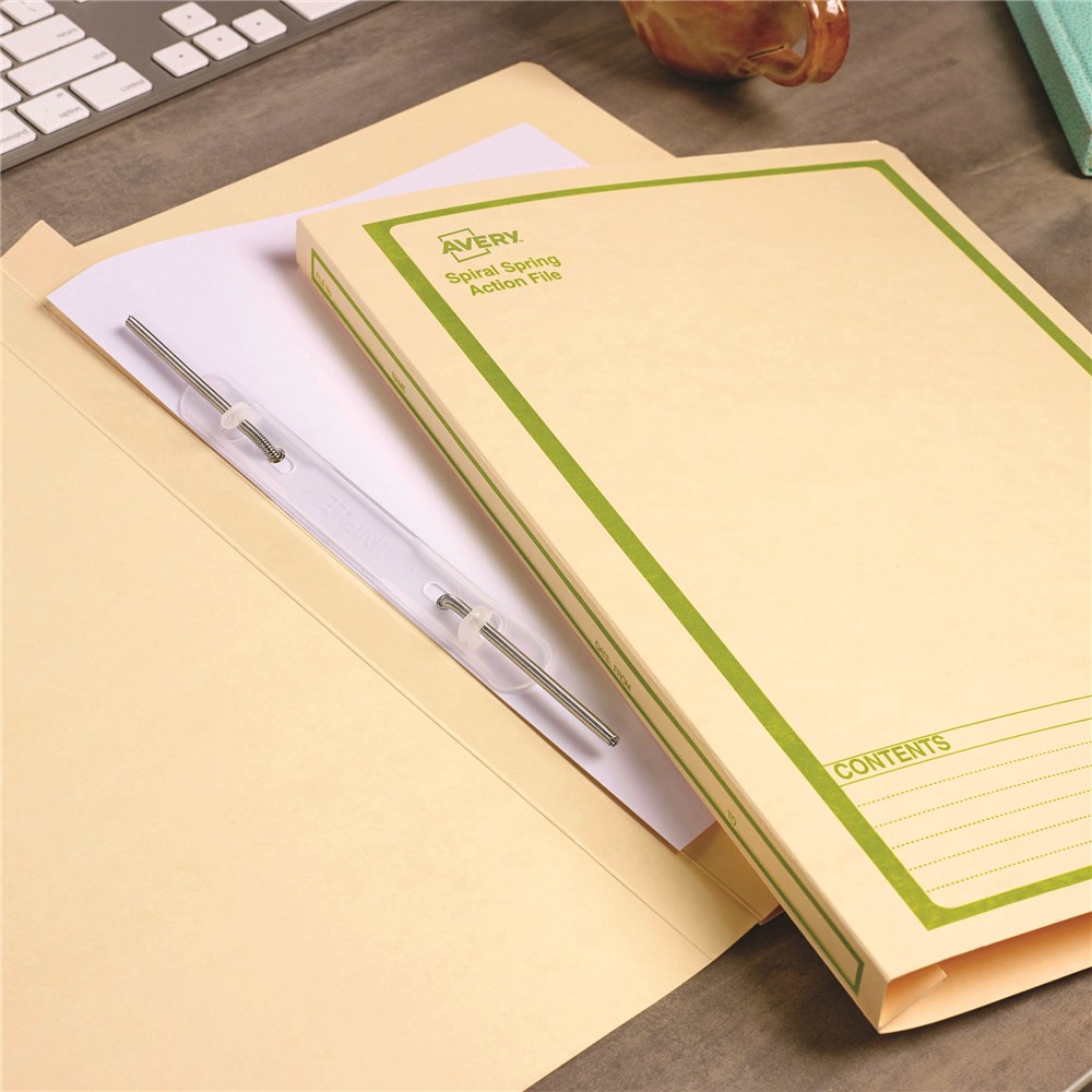 • Heavy weight file fitted with spiral spring coil fastener and pressure plate