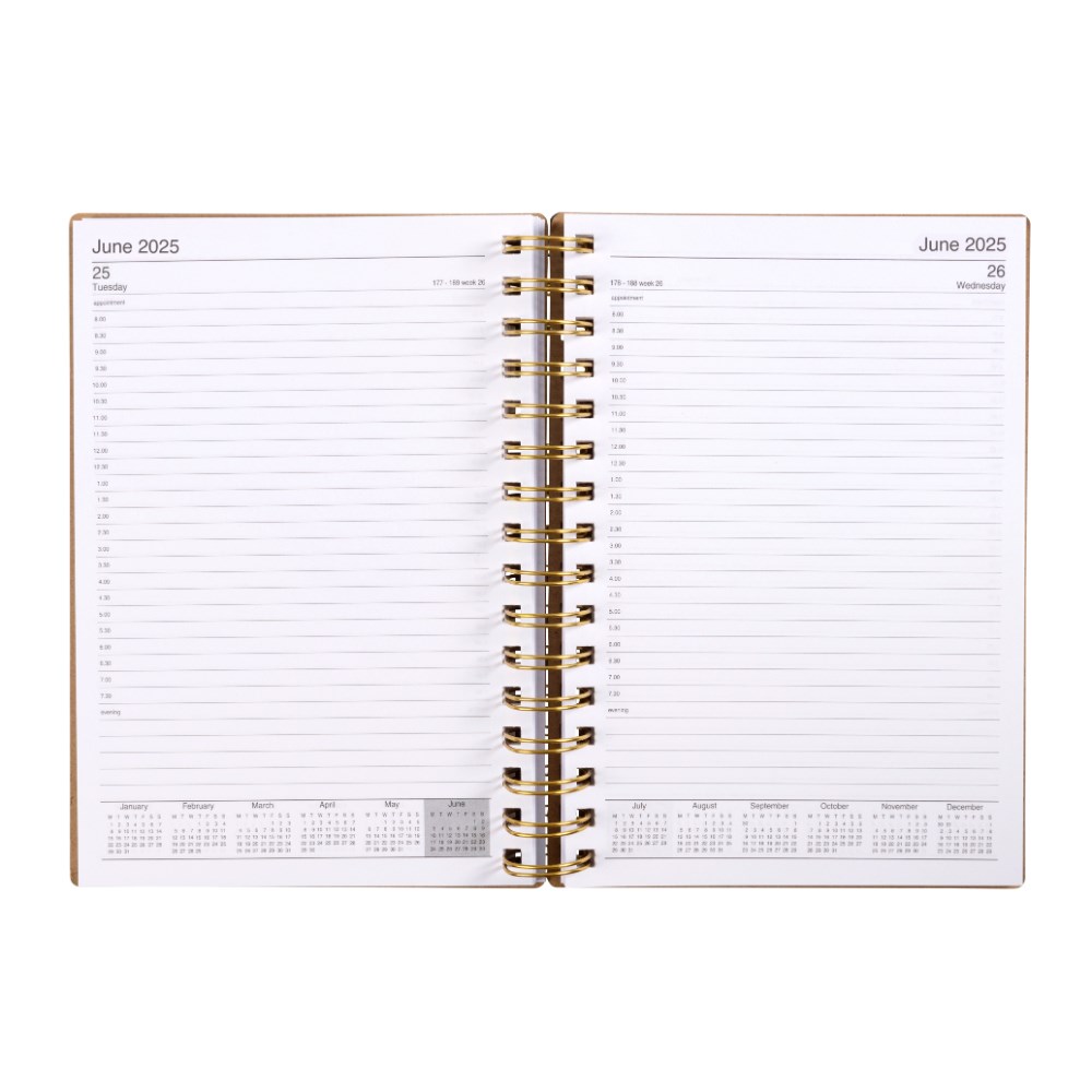 • Kraft hard cover front and back with twin wire-o binding so your diary lays flat on your desk.
