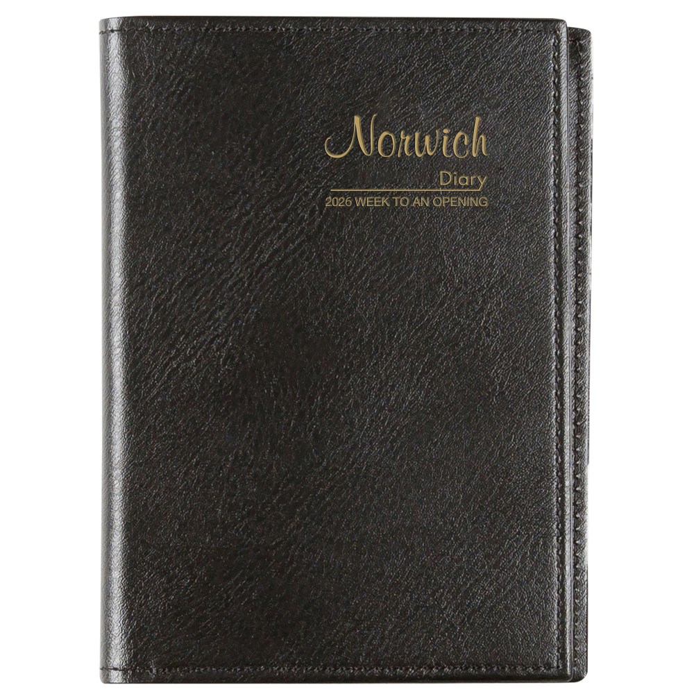 • Featuring a stylish flexible leather grain cover finished with the famous gold foil 'Norwich' logo, stitched edges and fine ivory paper.