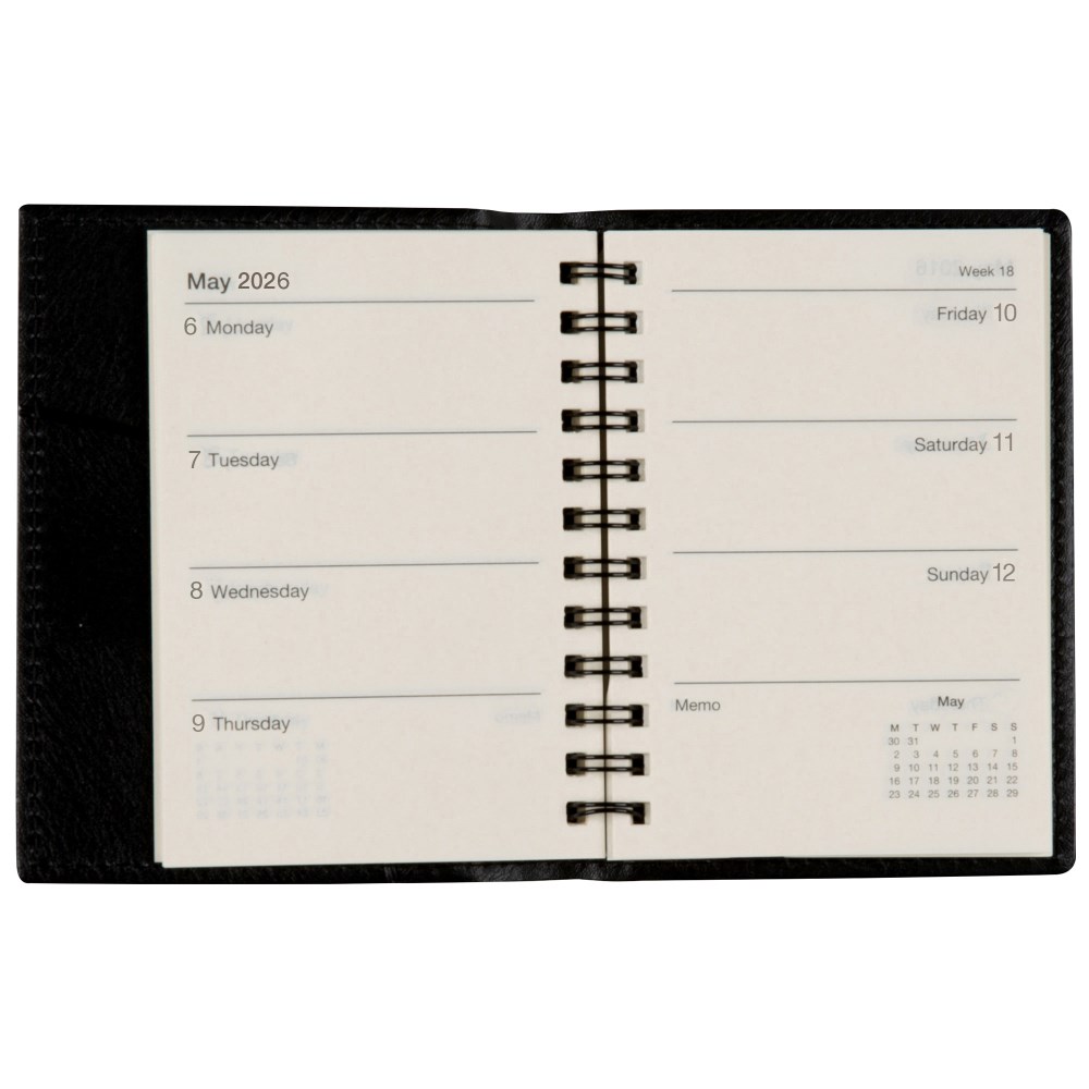 NORWICH SPIRAL DIARY 108x76mm, Week to Open Black