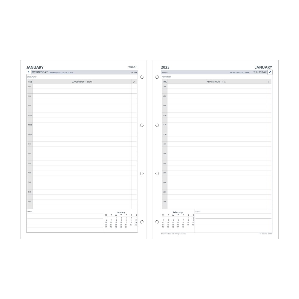 • This A4 Day Planner Day to a Page refill is printed on quality white paper, clearly packaged, and showing examples of page layouts for easy reference.