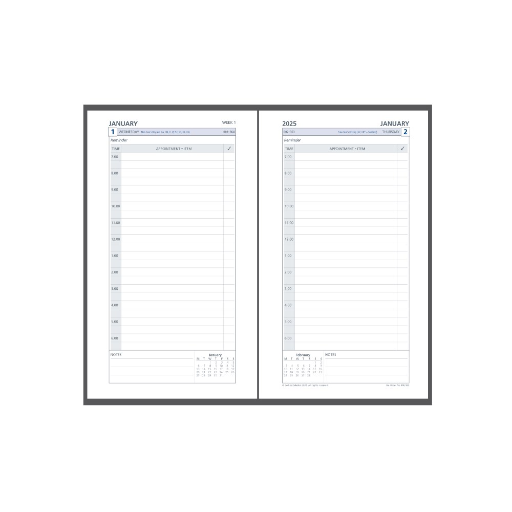 • This A4 Day Planner Month to View refill is printed on quality white paper, clearly packaged, and showing examples of page layouts for easy reference.