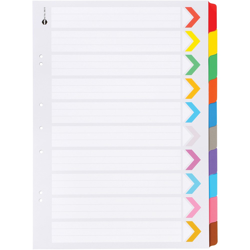 Marbig Plastic Indices & Dividers A3 Reinforced 10 Tab Portrait Multi Colour