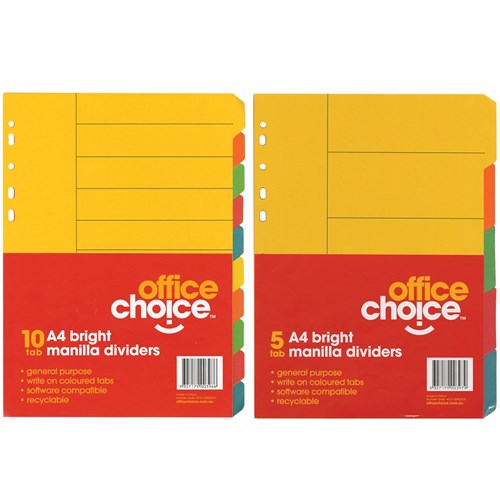 OFFICE CHOICE A4 DIVIDERS 5 tab Col'd Manilla Bright