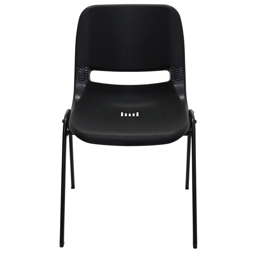 • Strong durable stacking chair with polypropylene shell and black powder coated underframe.