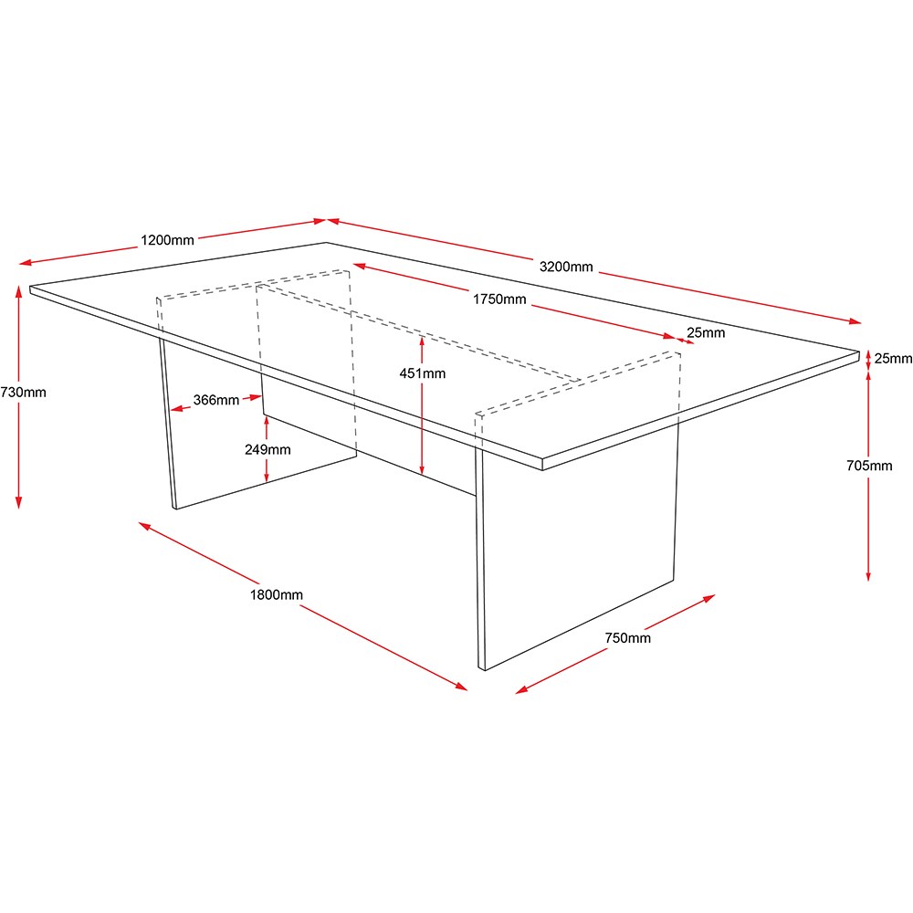 Rapidline Rectangle Boardroom Table 3200W x 1200D x 730mmH Cherry Top Ironstone Base