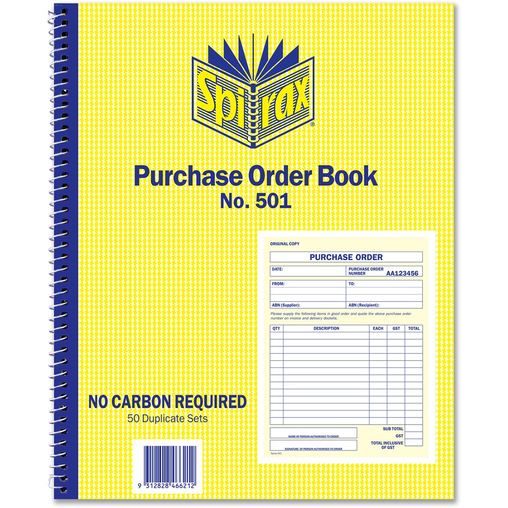 Spirax 501 Purchase Order Book Carbonless Quarto 250 x 200mm 50 Duplicate Sets Side Opening